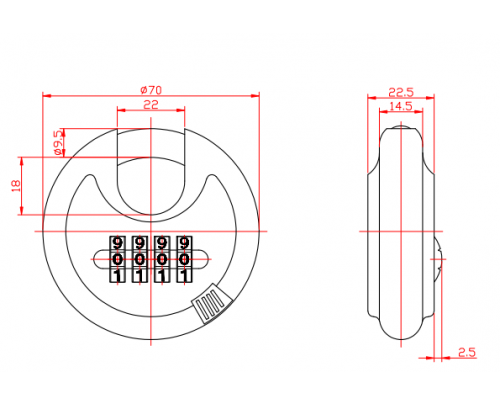 Stainless Steel Round 4 Digits Resettable Password Door Metal Disc Padlock