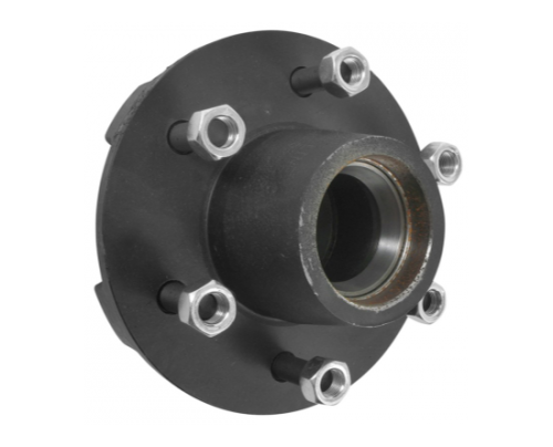 Hub is designed for use on trailer idler axles. Fits 5,200-lb axles. Inner bearing (25580) and race, outer bearing (LM67048) and race, grease seal, grease cap, wheel bolts, and lug nuts included.